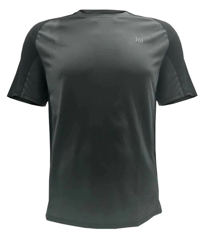 361 Degrees Men’s Athletic Workout Dry-Fit Tee-T-Shirt, Assorted Colors. 301610116. This lightweight athletic tee is perfect for your next workout or run. Reflective logo in grey on left chest to increase visibility. Body made of 100% Polyester, Insert 88% Polyester / 12% Spandex; regular fit. Ventilated mesh side insets. +1 Dry functional fabric will accelerate perspiring and keep wearer persistent dry and comfortable to improve sports performance. Color Choices: Castlerock Gray/Black or Skydiver Blue/Black or Chi Red/Castlerock Gray. 301610116