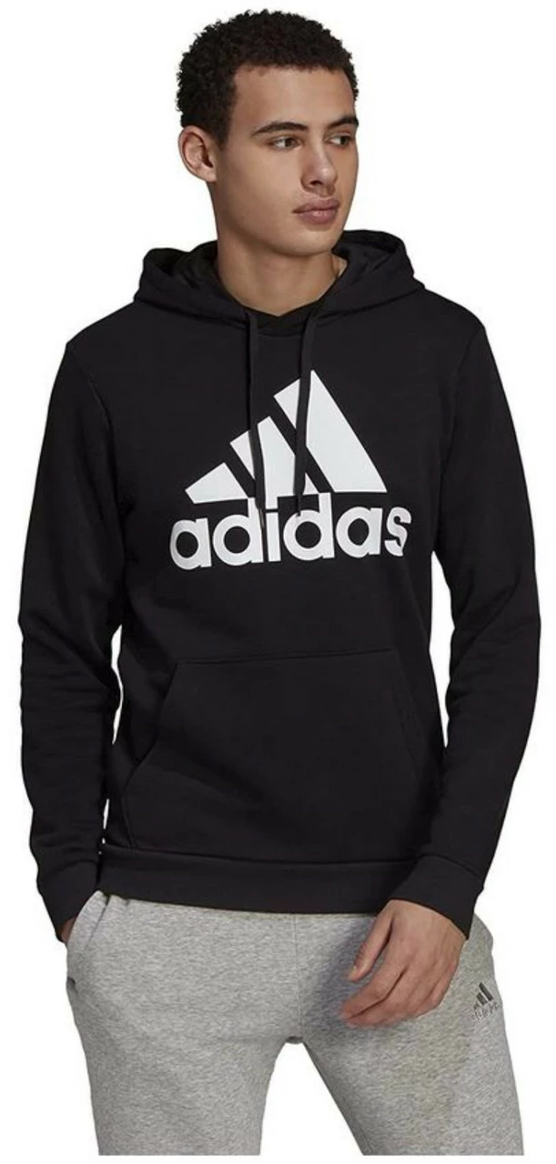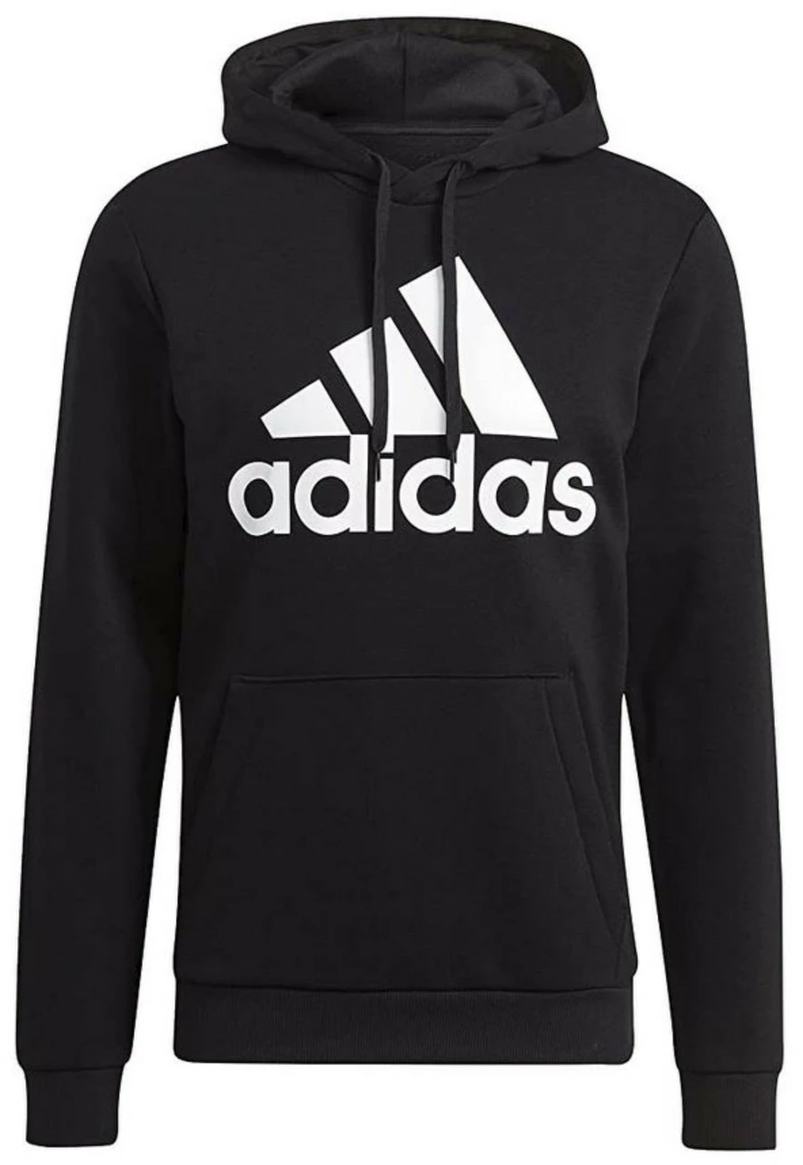Adidas Men’s Essentials Fleece Big Logo Pullover Hooded Sweatshirt � Black, GK9220. Nothing is more essential than an everyday hoodie. Casually slip on this Adidas sweatshirt after your daily workout, or throw it on in a rush on your way to class. Soft blended fabric feels like an all-day hug. Settle in to cozy comfort day in and day out. Featuring a drawcord on elastic waist, Ribbed cuffs and hem and a kangaroo pouch, this hoodie is perfect for everyday use! Adidas cotton products support sustainable cotton farming. This product is made with recycled content as part of an ambition to end plastic waste. Made from 53% cotton, 36% recycled polyester, 11% viscose fleece.