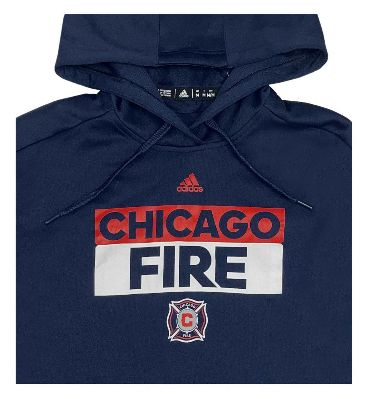 Adidas Men’s Chicago Fire MLS Hockey Hooded Sweatshirt. Represent Illinois hockey like the loyal fan you are. Drawstring hood and kangaroo pocket. Lightweight soft feel 100% polyester. Officially licensed by the MLS. Color: Navy/Red/White. ChicagoFire2