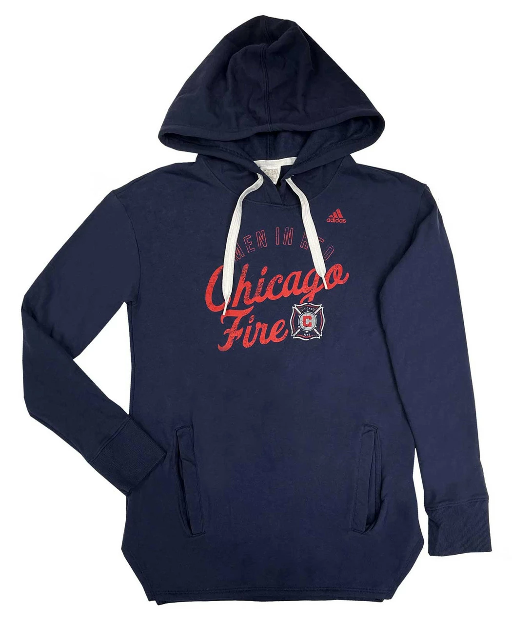 Adidas Men’s Chicago Fire MLS Hockey Hooded Sweatshirt. Represent Illinois hockey like the loyal fan you are. Drawstring hood and 2 front pockets to keep your phone and wallet safe. Lightweight soft feel 50% polyester, 50% Cotton. Officially licensed by the MLS. Color: Navy/Red. ChicagoFire1