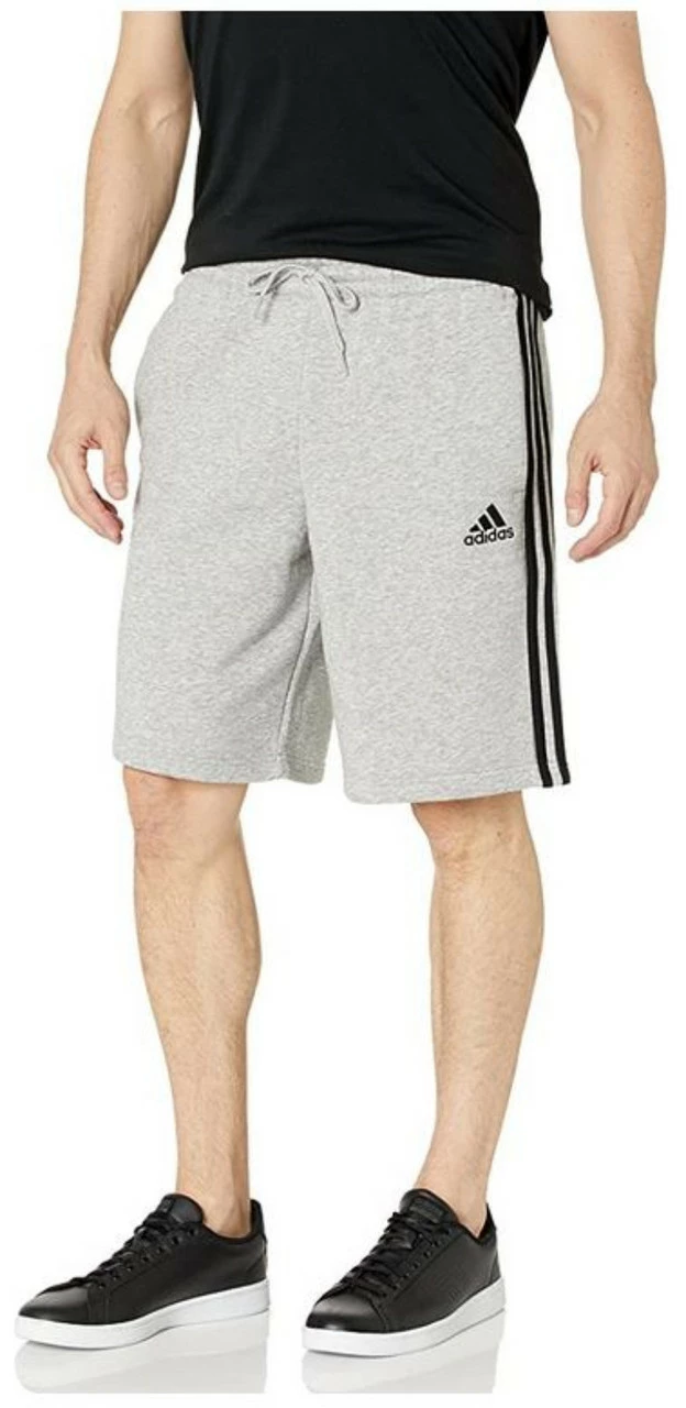 Adidas Men’s Standard Essentials Fleece 3-Stripes Shorts Heather Gray/Black, H20851. Made from 53% cotton, 36% recycled polyester, 11% viscose fleece Post-workout, you’re going to want to throw something comfy on, and these shorts inspired by classic Adidas gear fit the bill. Or hey, maybe it’s Sunday morning and you just want to chill in the soft fleece and stretchy waistband that feel like your favorite pair of sweats. You do you. Featuring a drawcord on elastic waist and side slip in pockets.