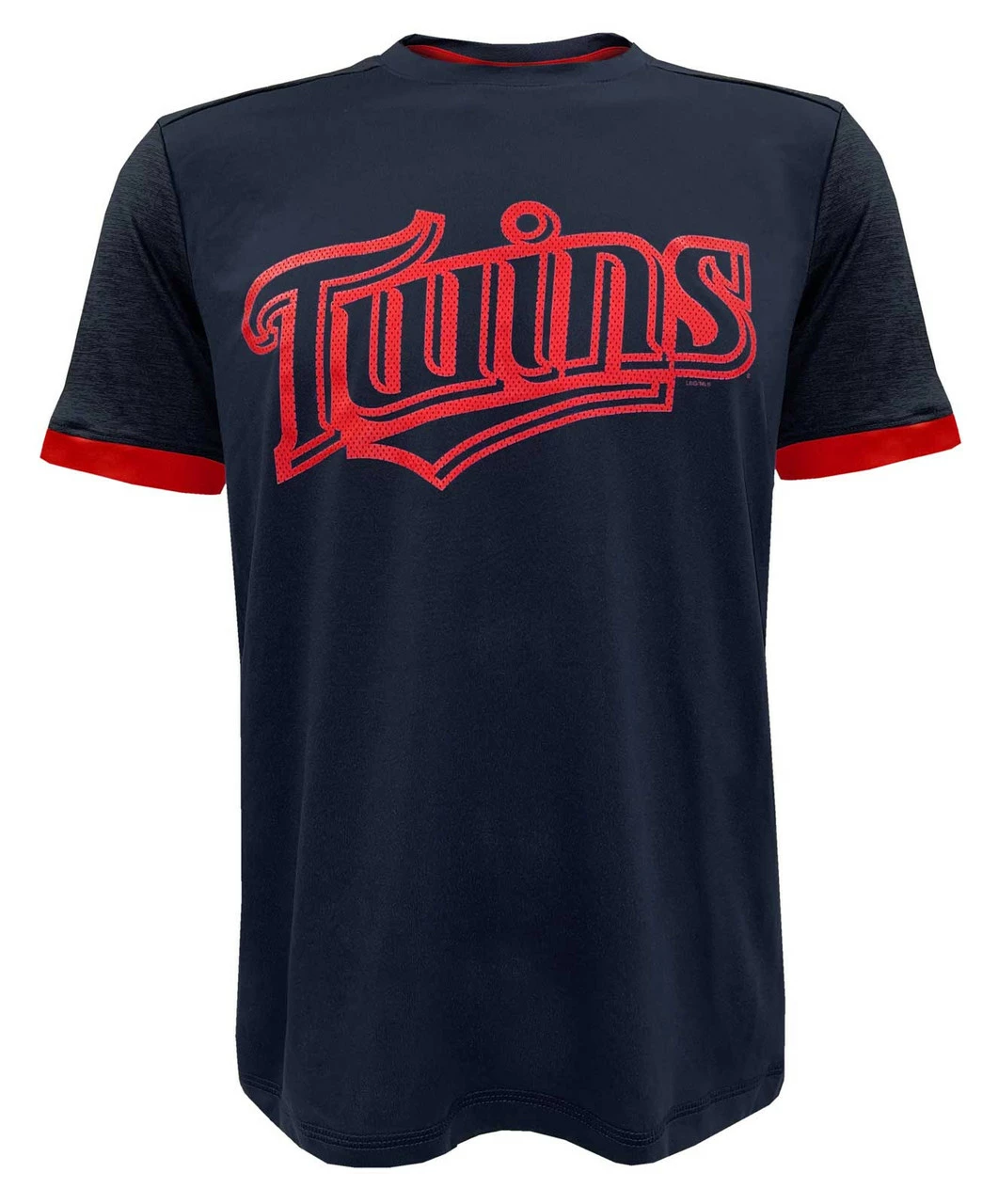 - Minnesota Twins team logo screen printed on the front of the shirt with a mesh font