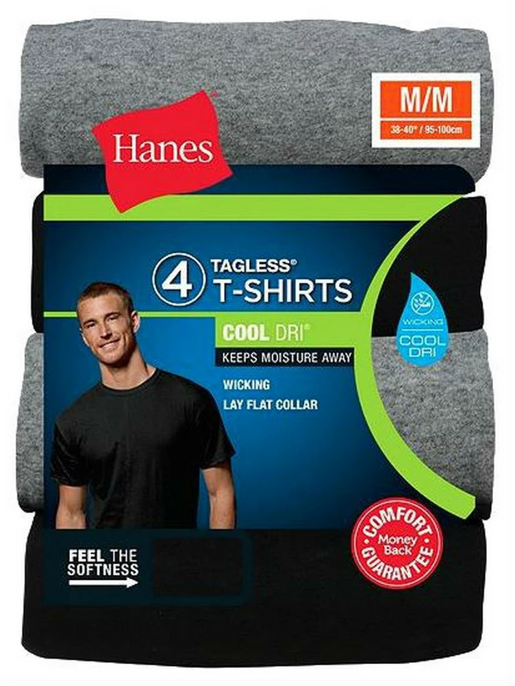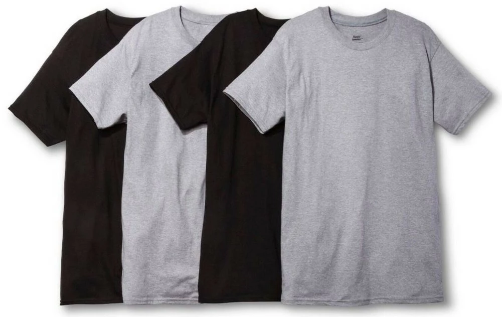This Hanes Fresh IQ ComfortSoft Dyed Men’s Crew-Neck T-Shirt, in a 4-Pack, is a classic tee and the ideal essential for any man’s wardrobe. The Fresh IQ advanced odor protection helps keep odors at bay. Feel free to work up a sweat when you need to while knowing you will remain fresh and clean. This Hanes men’s T-shirt is made with 100-percent preshrunk ComfortSoft cotton for a soft, breathable and relaxed fit wash after wash. It can be worn under other clothing and features a lay-flat collar that will keep its shape. This men’s short-sleeve T-shirt has a generous length to help it stay tucked snugly inside of the waistband. It is also tagless to prevent the scratchy irritation that sometimes comes with standard tags. The Hanes Fresh IQ ComfortSoft Dyed Men’s Crew-Neck T-Shirts, 4-Pack, are equipped to hold their position and shape as well as give you a loose and satisfying fit that you will enjoy. Color: 2 Gray, 2 Black 4-Pack. 2165P4