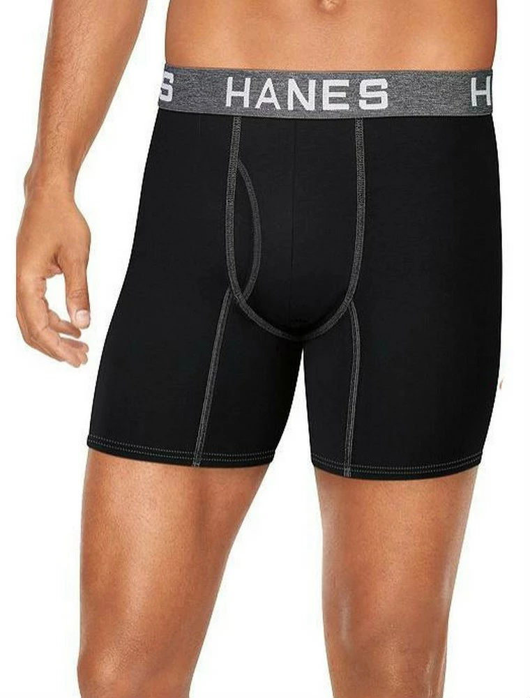 Hanes has created a performance engineered fit mens underwear for all to feel confident in. Made with ultra lightweight breathable mesh for all day comfort. FreshIQ? advanced odor protection technology attacks the odor-causing in your clothing that causes your underwear and socks to smell ? so now you can feel fresh all day. Cool Comfort? wicking fabric keeps you cool for all day comfort. Soft, stretchable Comfort Flex? waistband moves with you and keeps its shape wash after wash. Material: 57% Cotton, 38% Modal, 5% Spandex. Color: Grays & Black. UFBBB4