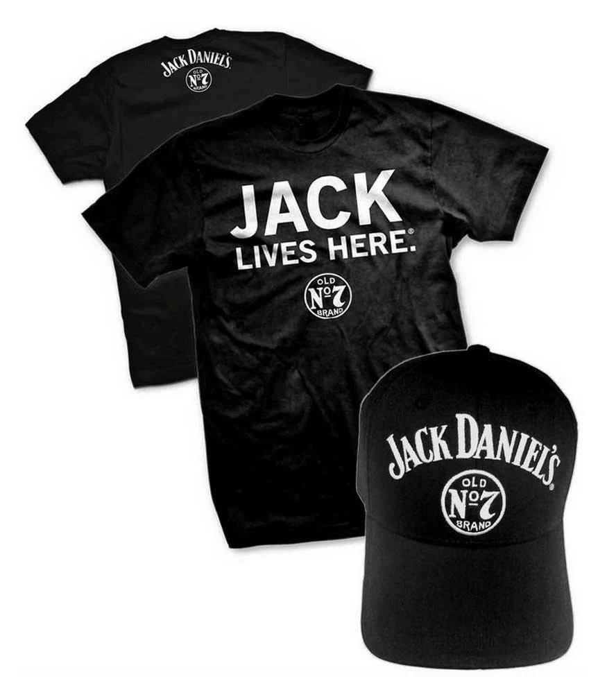 - Classic Jack Daniel’s Jack Lives Here T-Shirt and Old No. 7 Baseball cap.