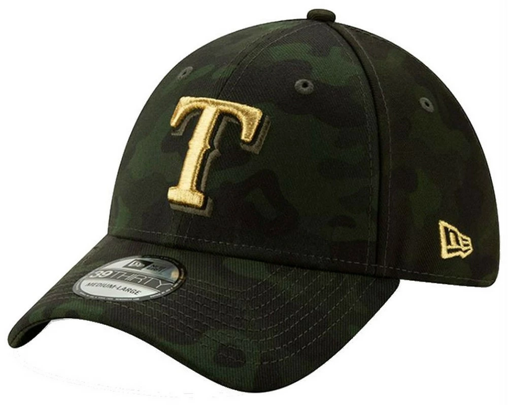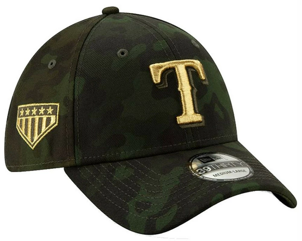 Honor those who serve in the U.S. Armed Forces as you cheer on your Texas Rangers with this 2019 MLB Armed Forces Day 39THIRTY Flex Hat. This New Era gear features an embroidered Texas Rangers logo on the front and a patriotic camouflage design. No one will be able to deny you’re the #1 Texas Rangers fan when you rock this sweet hat. Major League Baseball will donate its licensed royalties from the sales of such items to MLB Charities to support programs for service members, veterans and military familie. Officially licensed by MLB. Color: Army Green/Black/Gold. 12039508