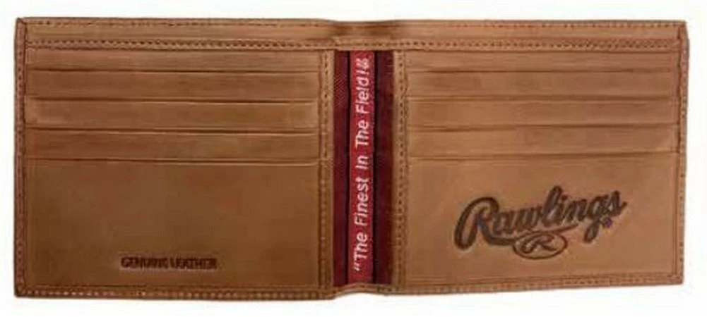 The Rawlings Play Ball bi-fold wallets are crafted from premium leather for superior quality. The unique leather texture of these wallets are complemented perfectly by the Debossed Rawlings logo and baseball emblem in the bottom corner. In addition, the Play Ball wallets are equipped with 8 credit card slots with an interior cash pocket for optimal storage and blocks RFID to keep your cards safe. Don’t look any further for a stylish, quality bi-fold wallet. Measures: 3.25 in H x 4.25 in W x 0.75 in D. Color: Tan. MW486-204