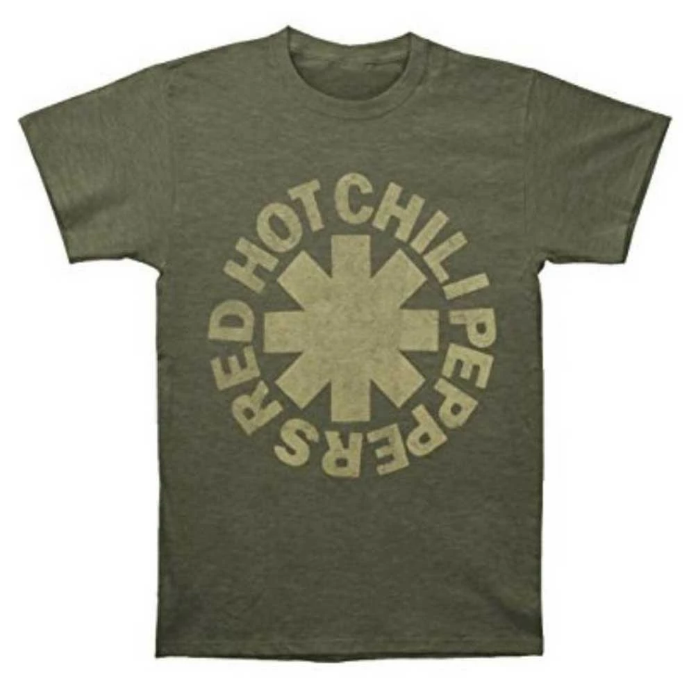 Are Red Hot Chili Peppers your band? Make sure everyone knows with this Red Hot Chili Peppers Men’s Tonal Asterisk Logo T-shirt. Features Round Tone on Tone Asterisk Circle Logo graphic on front. Preshrunk And Machine Washable. Blank back. Material: 50% Polyester, 38% Cotton, 12% Rayon. Officially licensed. Color: Army Green. 14531299