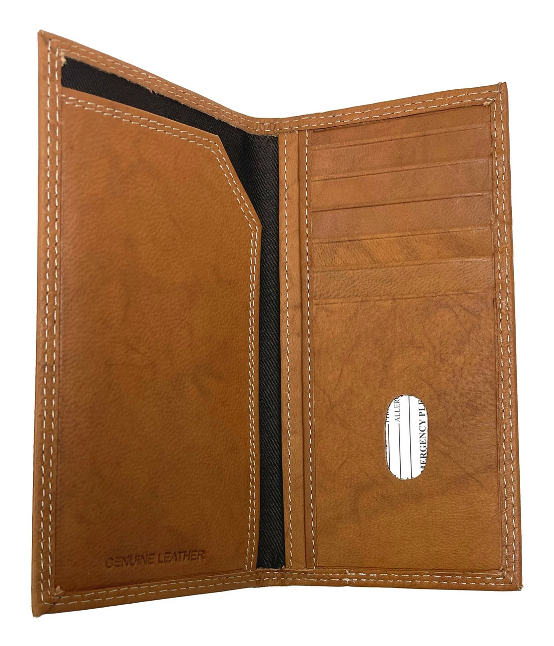 Rico Industries MLB New York Mets Embossed Roper Leather Multi-Slot Wallet, RPR5805. The Roper wallet checks out to be a nice catch for any sports fan. Made by Rico this wallet has a spot big enough for a check book as well as an area for 6 card slots including one clear view slot for a driver’s license. It also Features 2 spots where you can put your cash. Made in India and embossed in the USA. Dimensions are 3 1/4 x 1/4 x 6 3/4 in. Officially licensed by MLB. RPR5805