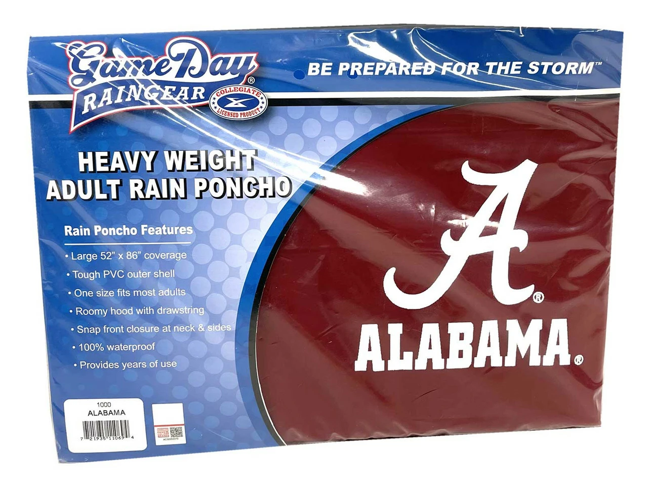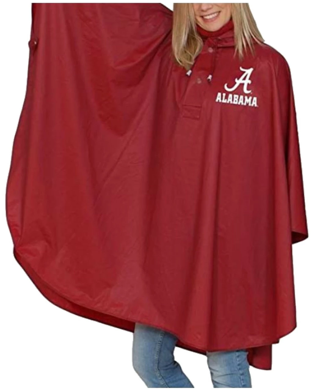 Storm Duds Alabama Crimson Tide Heavy Weight Adult Adjustable Hood Rain Poncho – One Size, 1000-09-ALA. Always be ready for the rain with this heavy weight rain poncho! This roomy poncho features an adjustable hood, snap front closures with side snaps and offers 52” x 86” coverage. Tough 18mm PVC makes it extremely durable, providing years of use. Featuring the Alabama Crimson Tide logo imprint. Don’t get caught in the rain without one! 1000-09-ALA