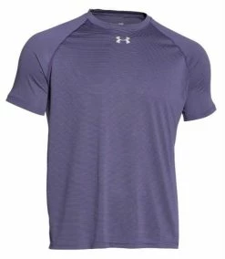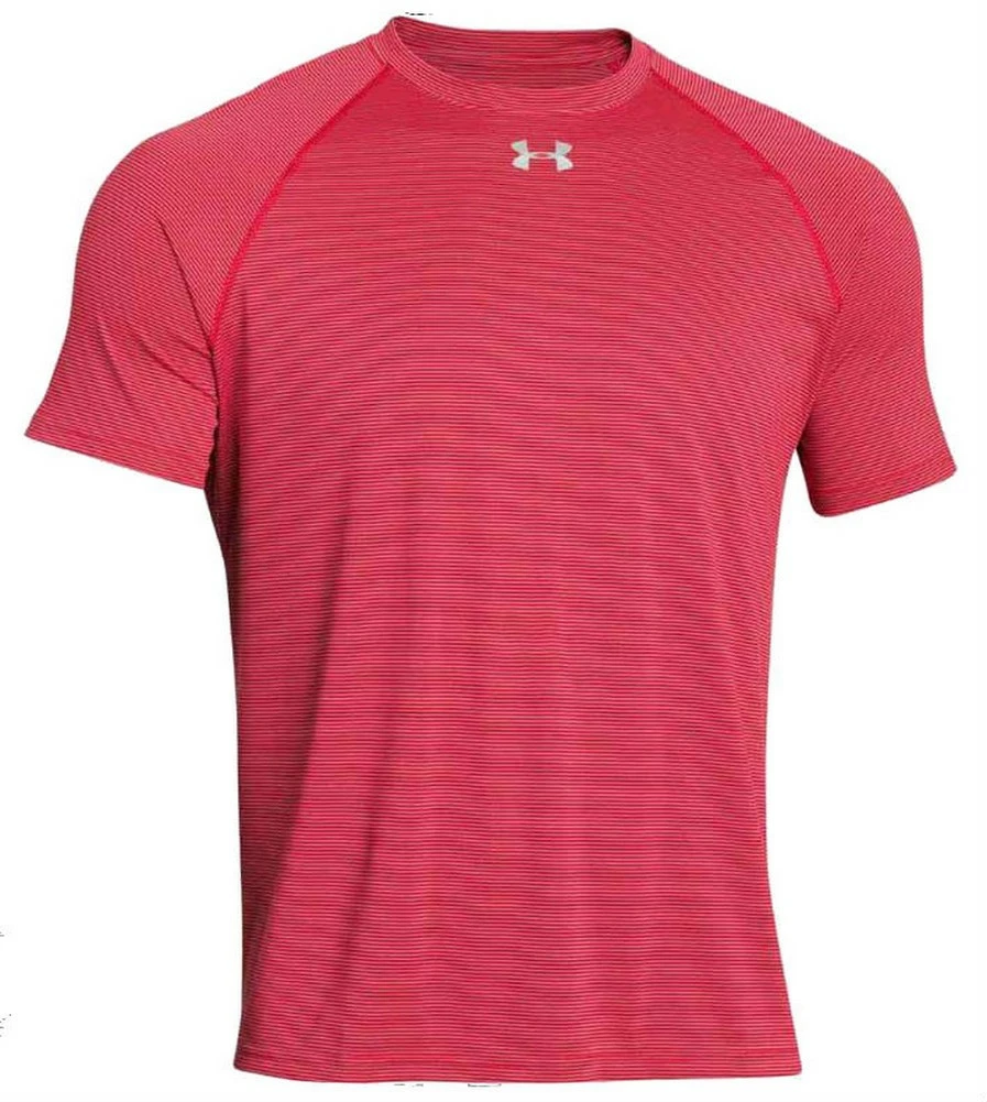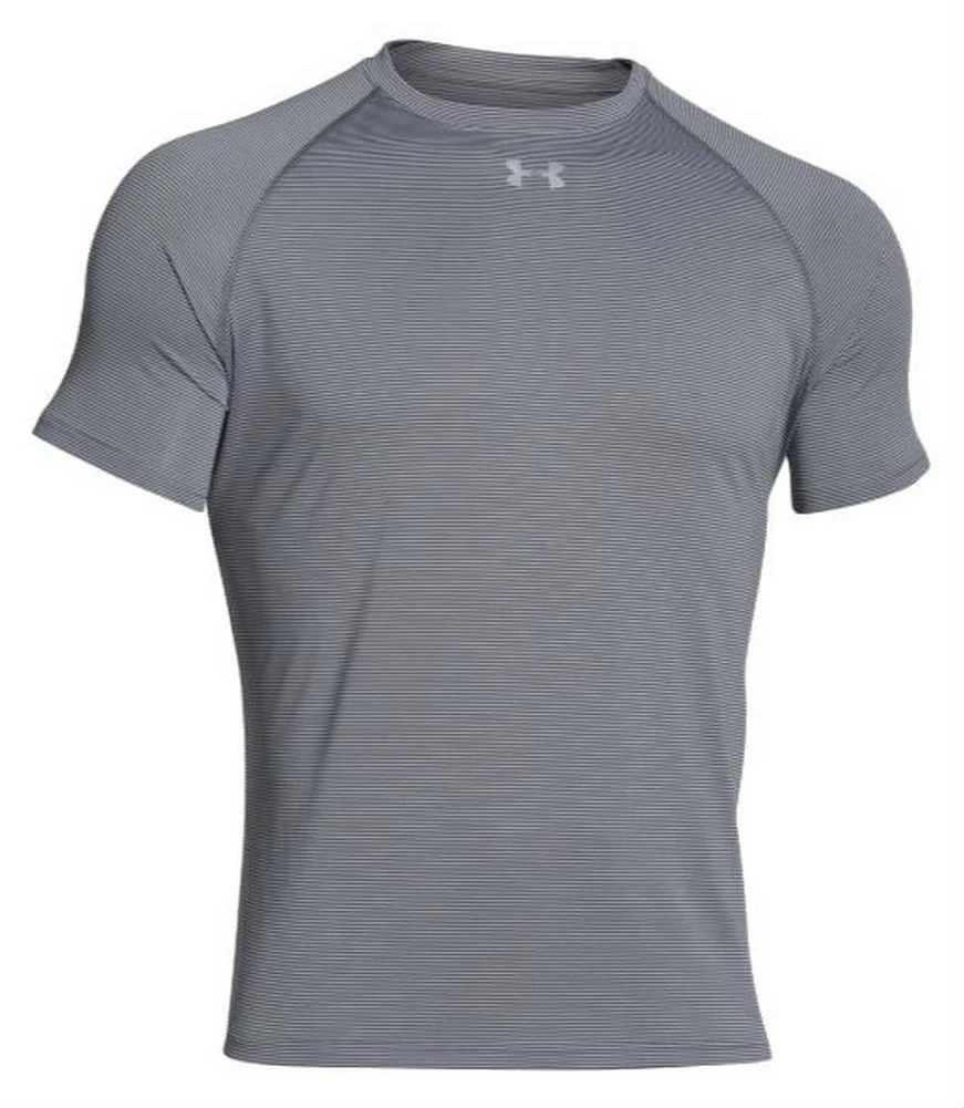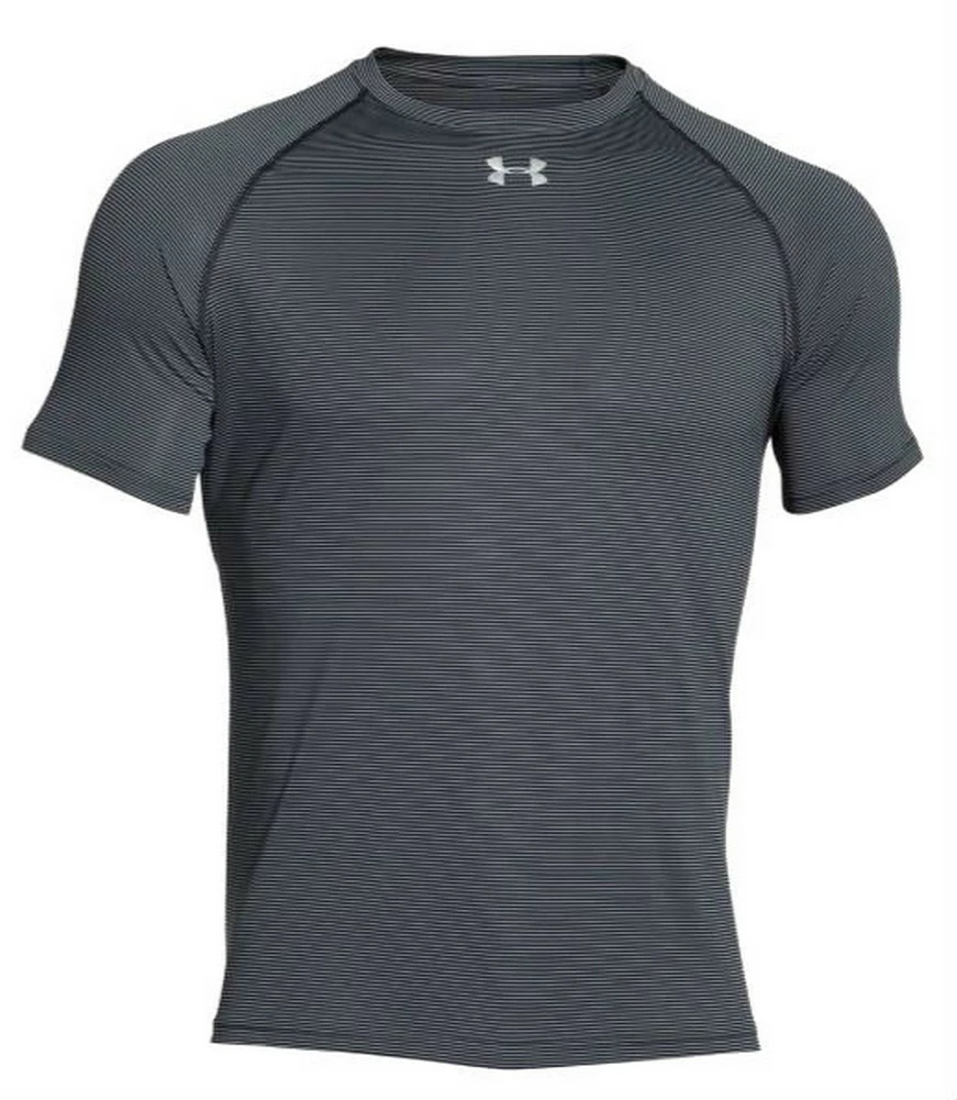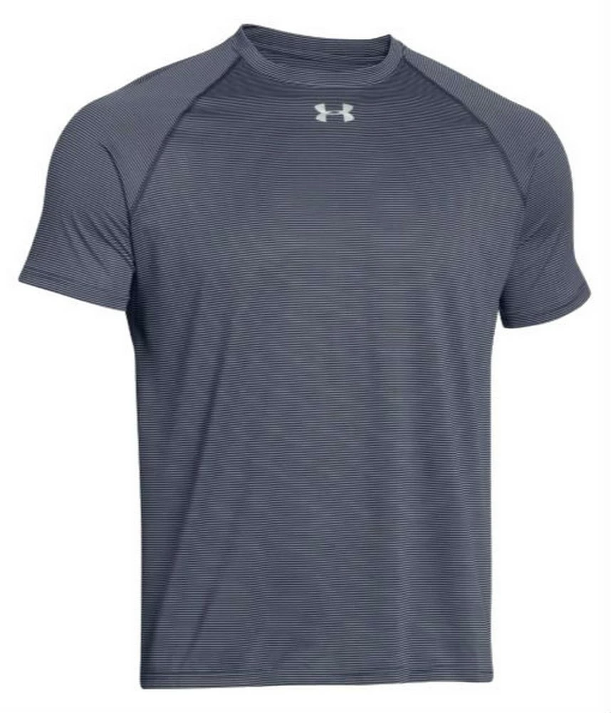UA Tech fabric has a soft, natural feel. Signature Moisture Transport System moves away sweat. Lightweight stretch construction improves mobility. It is a lightweight, flexible athletic shirt with a steel colored microstripe pattern, ribbed crew neck design and raglan sleeves. Made with Under Armour Tech fabric which is not only extremely soft with a more natural feel for impressive comfort but it also provides the perfect amount of stretch that permits improved flexibility and movement while still maintaining its shape. With a re-engineered athletic fit that is loose and breathable, the Under Armour Men’s Stripe Tech Short Sleeve Locker T will be your perfect workout shirt. It has a ribbed crew neck for a classic look and raglan sleeves that enhance mobility and give you full range of motion through the shoulders. Under Armour’s Signature Moisture Transport System moves sweat up and away from your skin and then pushes the sweat through the fabric where it can be filtered and quickly evaporate to leave a cooler, drier and more comfortable feeling behind. Under Armour created an technology that helps to eliminate odor causing substances in order to deliver a fresher, cleaner workout experience indoors or out. Available in 6 color choices. 1276222