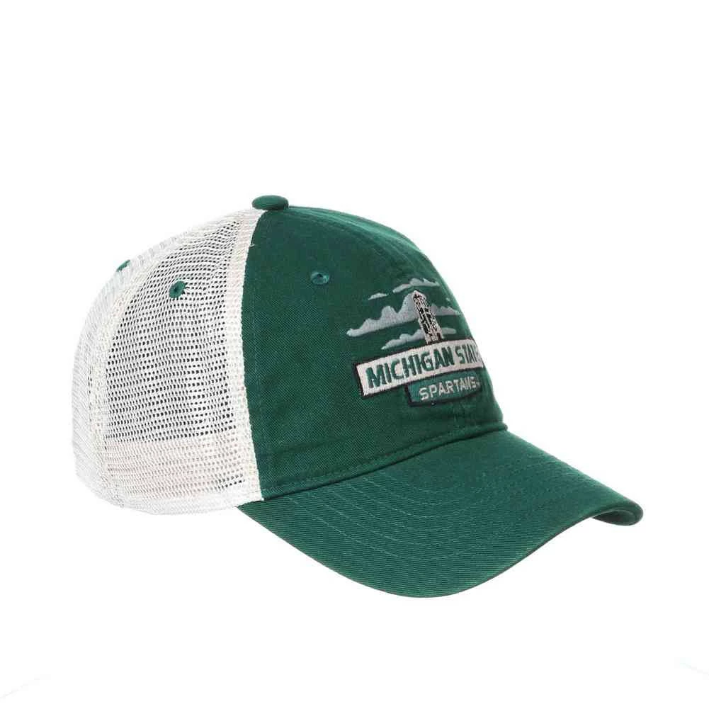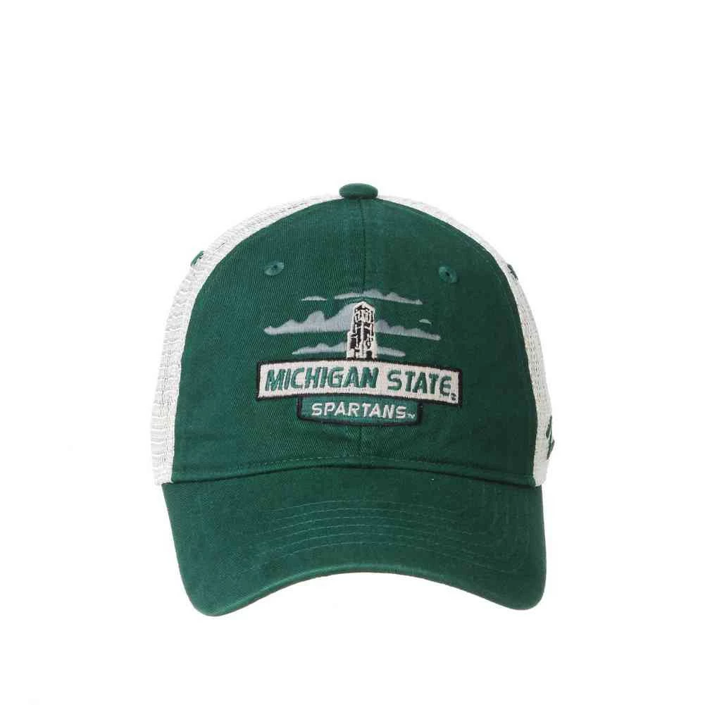 Show your support for your college team, Michigan State University cap design. This Cotton/Poly Blend adjustable cap with adjustable snap back closure by Zephyr. Zephyr Headwear was established in 1993 by former sports retailers who weren’t satisfied with the hats they had to sell in their stores. Zephyr initially focused on improving college hats and quickly became a major hat company by innovating many of the styles and treatments that are common in headwear today. Know as “Z Hats” because of the embroidered “Z” on left side. Zephyr insists on the highest quality materials and innovative design to stand a hat above the rest! Officially Licensed. Color: Green/Tan/Gray. MCSKNX001001